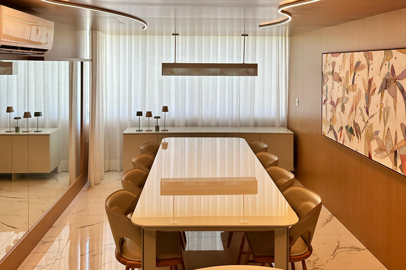 A sala de jantar é um espaço de encontros, conversas e refeições especiais. Com móveis planejados, cada detalhe é pensado para oferecer conforto, praticidade e harmonia, valorizando o ambiente e tornando cada momento à mesa ainda mais agradável. Um design sob medida transforma a sala de jantar em um lugar único, que combina beleza e funcionalidade no dia a dia.